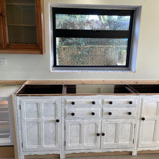 This was one of our more interesting projects. The client had purchased lots of Ercol units and wanted them crafted in to a beautiful one of a kind freestanding kitchen. The client has chosen the pony the units her self and is waiting on the granite. We hope to return to finish the island and oven section in the new year.